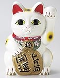 - 【商売繁盛開店祝い等に】招き猫 白小判 左手 4号 貯金箱サイズ違い・色違いも取り揃えています/工房 百の手