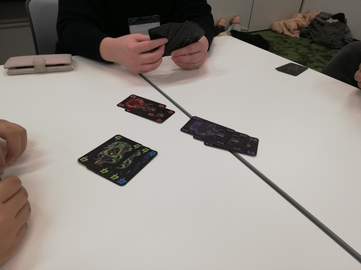 今回の参加者は園児、小学生、中学生とその親たちという構成でした。また、ドイツゲームを遊ばれた経験のあるご家庭ばかりでした。そのためか、運要素が小さめのゲーム、参加者年齢比としては少し高めのゲームが選ばれる傾向にありました。
