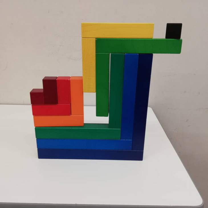 今回初参加のお子さん方も含め、Neaf社の積み木を楽しんでいただきました。子どもならではの発想から作り出される造形が素晴らしかったです。数々の作品の中から、特に素晴らしかった作品三つを紹介します。