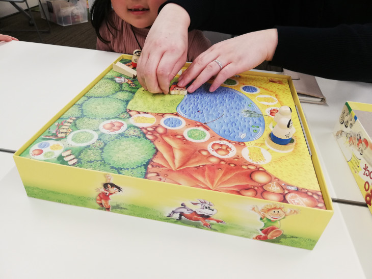 そのなかのひとつ「やぎのベッポ」。園児のお子さんと小学生のきょうだいでゲーム選びがなかなか悩ましい、そんな時にはこれですね。今回、園児、小学生の二人の子どもとそのお母さんとで、楽しんでいただきました。
