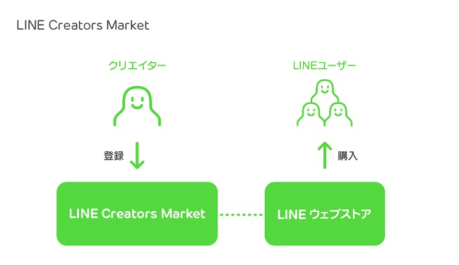 「LINE Creators Market」で制作されたスタンプは1セット40種類100円で販売され、クリエイターには売上のうち50%が分配される。分配された金額から源泉所得税を差し引いた金額を受け取ることができるが、クリエイターや購入者の国により適用される税率が異なる。