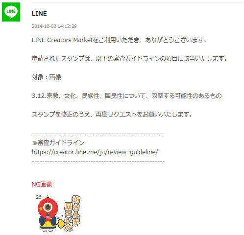 リジェクトきちゃいました!!(*・ω・)ノこんばんわさぁ~またきましたよ!!リジェクト が・・・今回は第8弾スタンプの赤鬼の関西弁バージョンでした(ID60000番台ですが最初に全否定されたスタンプの中身総入れ替えしてます)そしてリジェクトの内容は・・・・宗教、文化、民族性、国民性について、攻撃する可能性があるものお坊さんがダメ?屁がダメ?組み合わせ??誰もつかってない関西言葉だったのに・・・全然違うスタンプにひとつ変更しよーLINEスタンプ販売中~☆ZORO SHOP