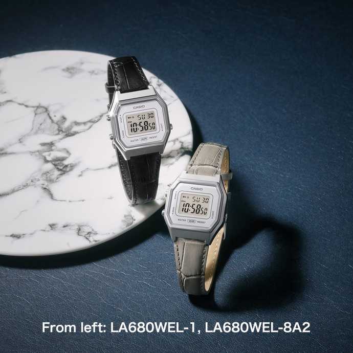 クラシカルな型押しレザーバンドを組み合わせたデジタルウオッチ、LA680WEL。