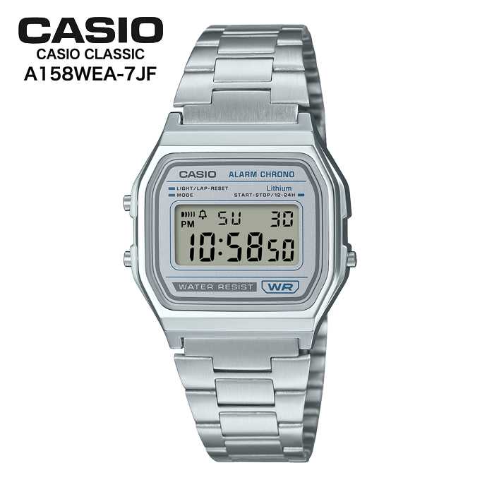 A158WEA-7は、全体をシルバーで統一し、文字板のラインや