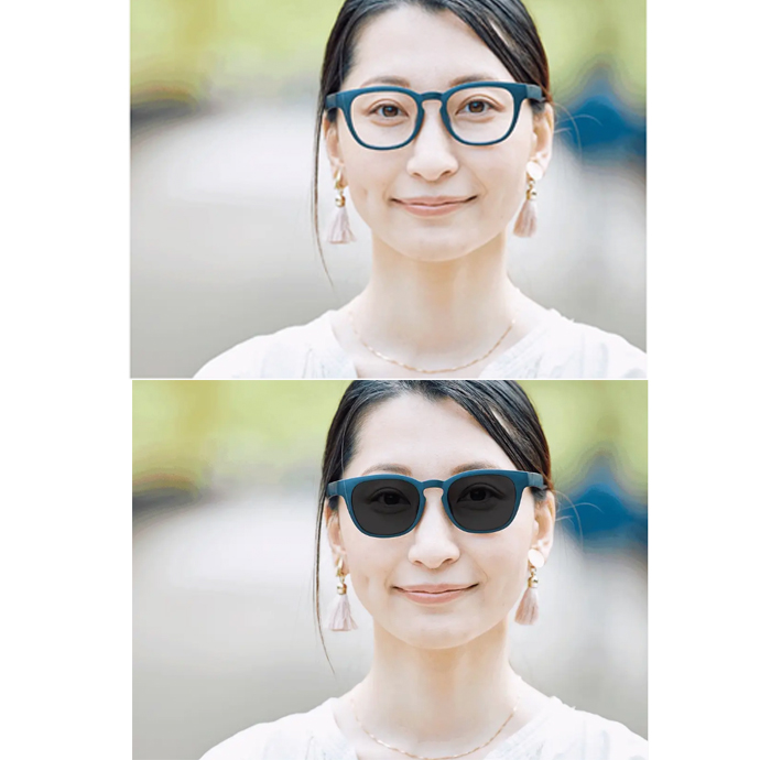 ●夜間や室内では透明レンズ、屋外ではまぶしさをカットするサングラスに変化します。