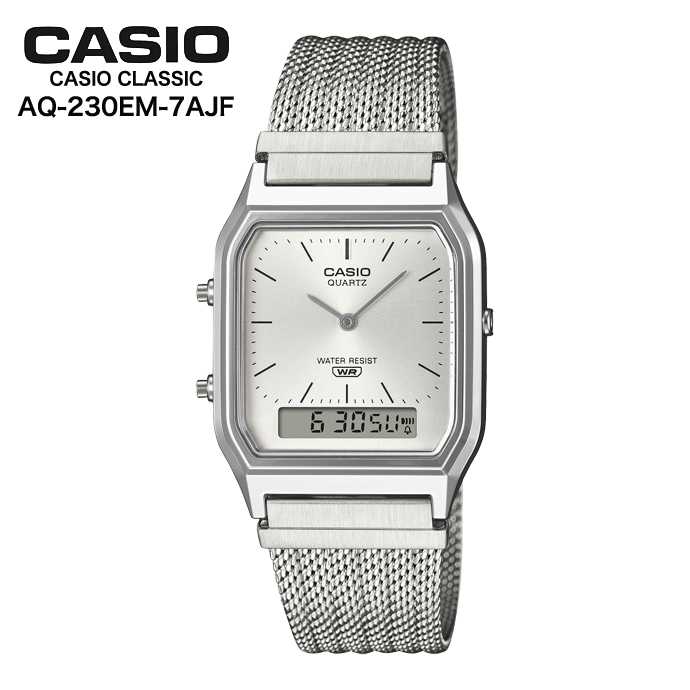 角型フェイスにアナログ時計とデジタル表示を組み合わせたAQ-230を、
