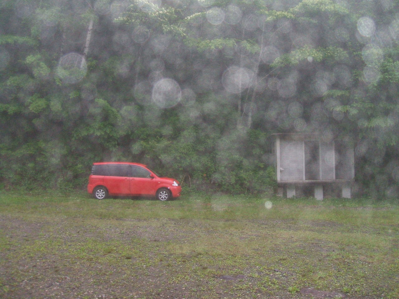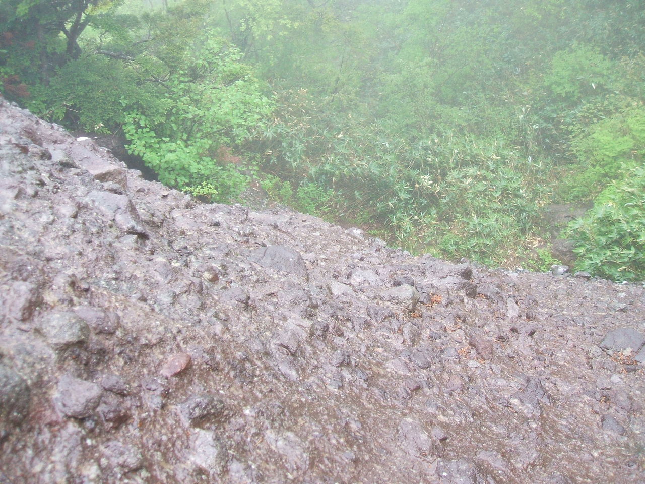 降りしきる雨で地面がグチャグチャ・・・ スベルスベル