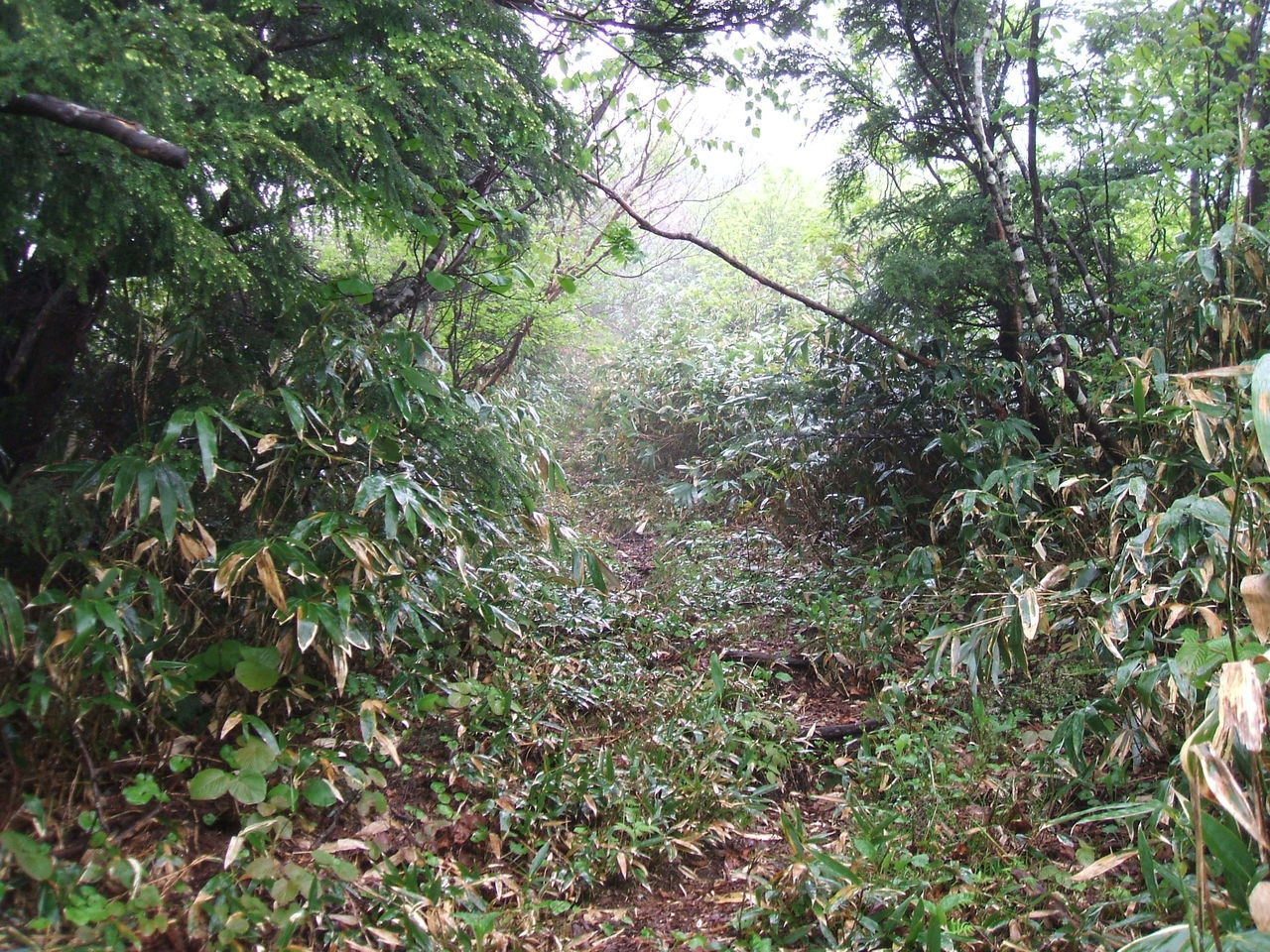 熊笹のトンネルを歩きます。結構急です・・・ 汗がしたたるわ