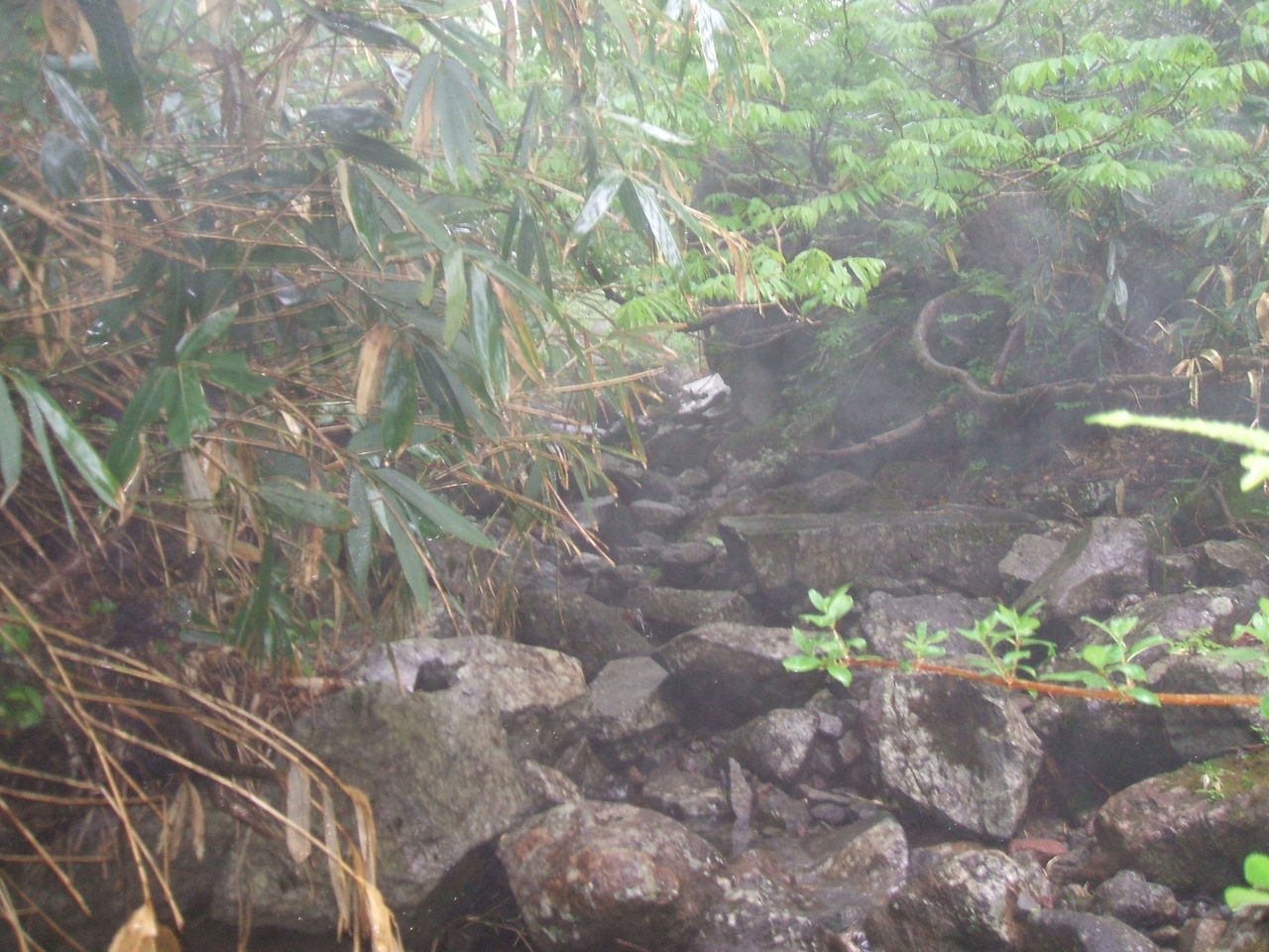 木の根っこがスベル。笹の葉がスベル。岩がスベル。泥がスベル。