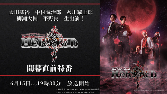 「MARS RED」開幕直前特番放送6月24日より開幕するロックミュージカル「MARS RED」【配信情報】ニコニコ生放送にてロックミュージカル『MARS RED』開幕直前特番の放送が決定しました!泉見洋平さんの出演は無いようですが、お知らせです😊【「MARS RED」6月15日(火)ニコニコ動画にて配信】ロックミュージカル『MARS RED』特番6月24日に開幕する、ロックミュージカル『MARS RED』の直前特別番組をキャスト生出演...live.nicovideo.jp