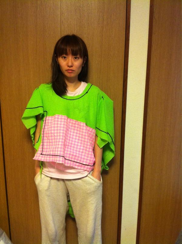 さぁ、来週から渋谷パルコで途中でやめる販売されますよ~どんどん作ってUPしていきます。まずはコチラ!最初からわけわかんない服。#夏じゃないよ #秋物作らないと #コートの上から着てよ pic.twitter.com/BsckRGb1