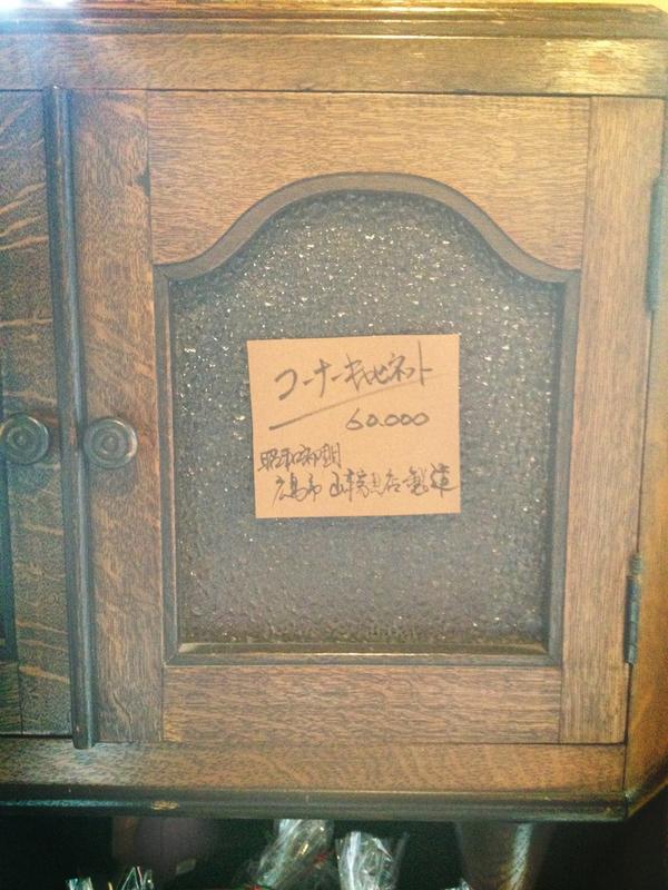 山本家具店製造!コーナーキャビネット!¥60000!一部欠損アリ・2月末まで半額!だから¥30000!調査前のヒカルさん「もしあって5万とか3万だったら買うしかないでしょ!」プライス的中! pic.twitter.com/m9Iu3NE7