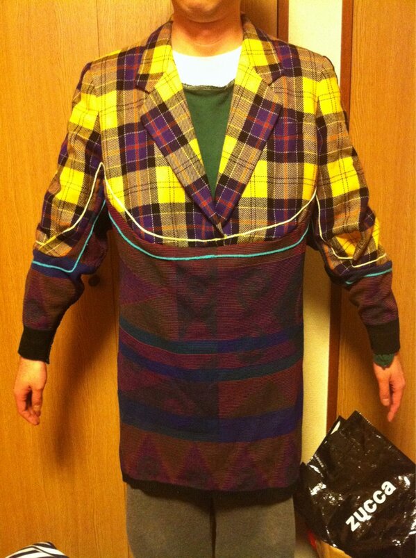 @ZAguitaristPPA なんと?体重と身長が僕とまったく同じです!着るとこんな感じです。肩幅44㎝着丈97㎝です pic.twitter.com/8uwcmL1A