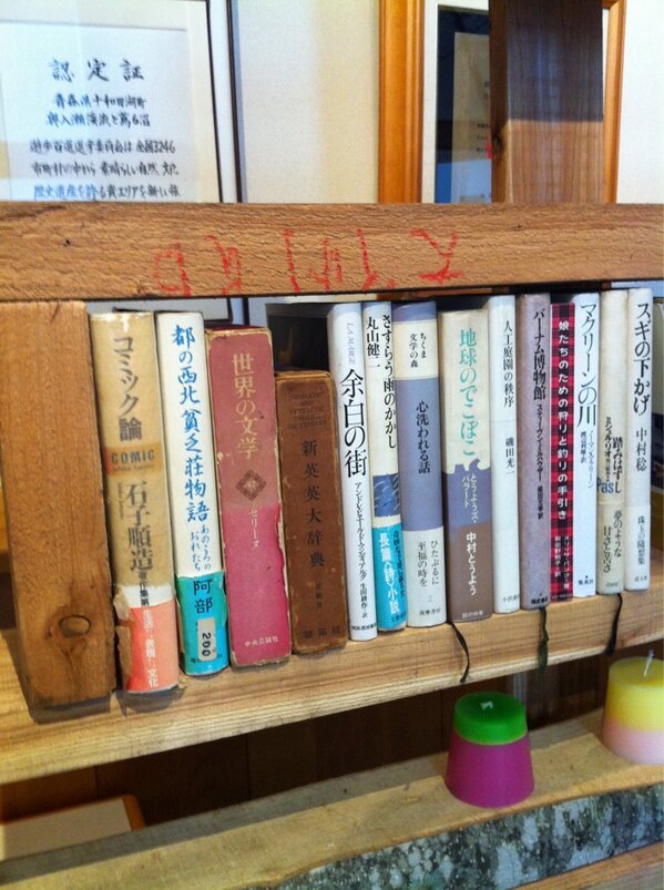 @usymtr 寝るな!起きろ!奥入瀬にあんたの本があったでやんすよ~ pic.twitter.com/B943majC