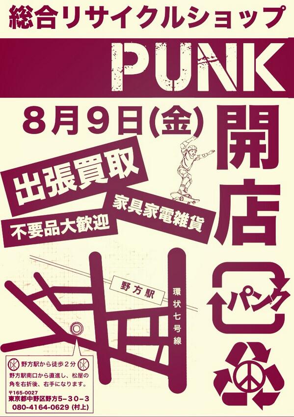 素人の乱21号店リサイクルショップPUNK 野方店 8月9日Openします!!!!!