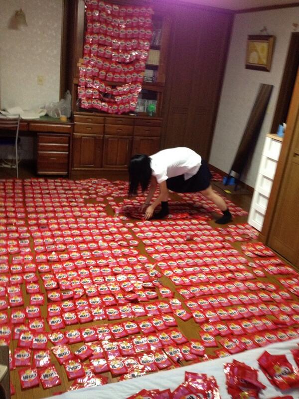 “@kitaharatakeru: 妹が7年間ためた梅ねりの袋を並べてる。ギネスを目指してるらしい。 pic.twitter.com/yTk1O7tAiD”