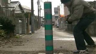 指差し作業員をやる前にひとけの無い所で金属バットで故郷を叩く姿が、2013年の眼差しからだと、住めなくなってしまったカタカナの福島でそれをやっているようなせつなさがある。故郷を返せ、ふるさとを返せと。