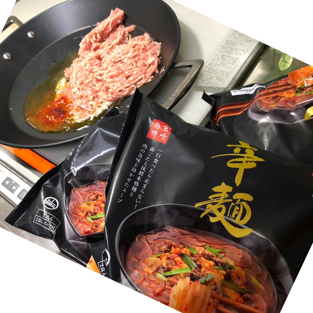家でミンチ増加して辛麺作りました![]()