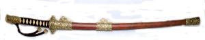 ![]() | 近代の細太刀(大正時代・個人蔵・全長85.5cm) 細太刀は飾太刀の飾金物を省略したものが本来でしたが、近代では陣太刀風の湾曲のある刀になっています。 この細太刀は戦前の勅任官が儀式の際に使用したもので、鞘は沃懸(いかけ)地という目の細かい金粉を使ったもの。これは平安時代は検非違使や老人用でした。 |