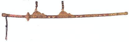 | 金装梨子地蒔絵細太刀と平緒(國學院高等学校蔵・復元品) |