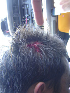 その瞬間頭に浮かんだのは「縫うから当分波乗りできねーよ!」でした。w