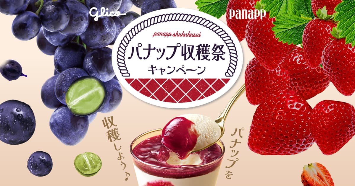 パナップ収穫祭キャンペーン|グリコキャンペーン期間中、パナップ 濃厚ぶどう・濃厚いちご、マルチパックを1箱以上を収穫し、レシートを撮影してキャンペーンへ応募しよう!抽選でパナップ詰め合わせやえらべるPayが当たる!cp.glico.com