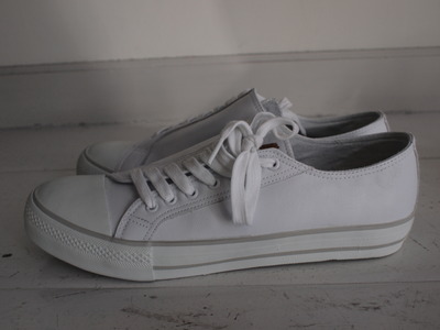 足元をパッと明るくしてくれる白スニーカーはコートなどを着て重たくなるこの季節にイイかもです