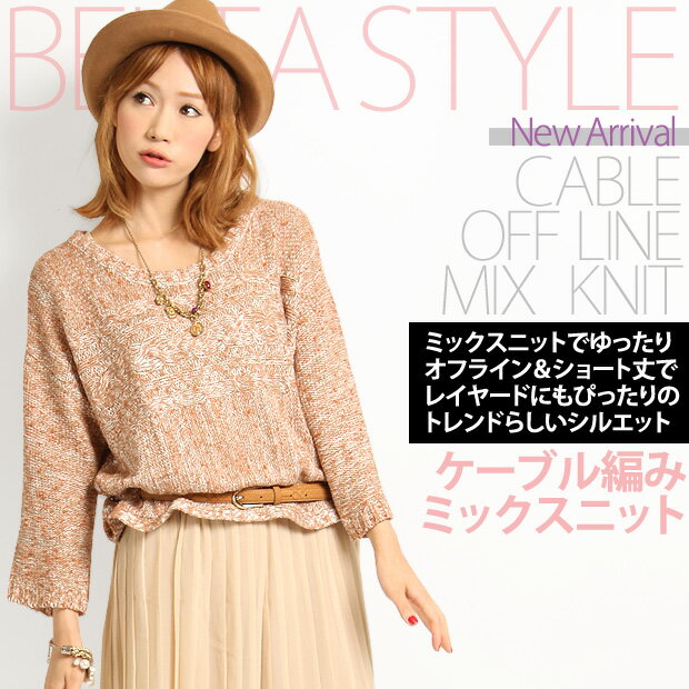 【ケーブル編みオフラインミックスニット】ニット セーター ニットトップス ニットセーター ケー...