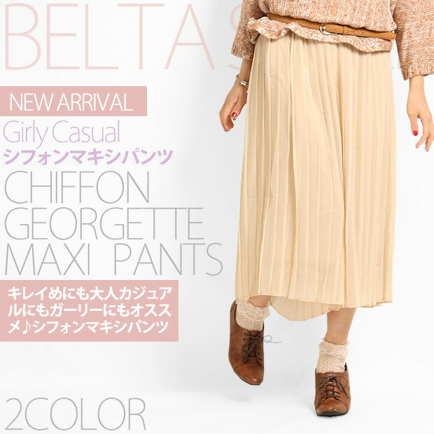【シフォンプリーツマキシパンツ2カラー】マキシ マキシパンツ シフォン シフォンマキシ シフォ...