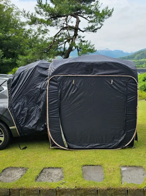 普段からSUVでの車中泊やアウトドアを楽しんでいますが、もっと快適な空間が欲しいと感じていました。そんな時に見つけたのが、「SUV車後部連結テント(5〜8人用)」です。車の後部に連結できるこのテントは、まさに私たちが求めていたものでした。早速、週末のキャンプで試してみることに。