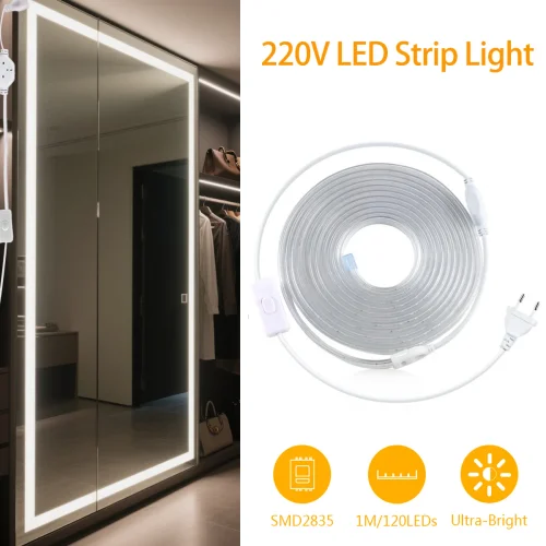 自宅のドレッサーをもう少し明るく、メイクもしやすい環境にしたいなと思っていたところ、この「LED化粧台用バックライトランプ 220Vスイッチ EUプラグ 120LEDs/m 1-20m 高輝度ライトストリップ リビングルームワードローブ用」という商品を見つけました。特に、照明の暗さでアイメイクのムラができたり、ファンデーションの色味が分かりにくかったりすることに悩んでいたので、まさに求めていたものだと感じ、すぐに購入を決めました。