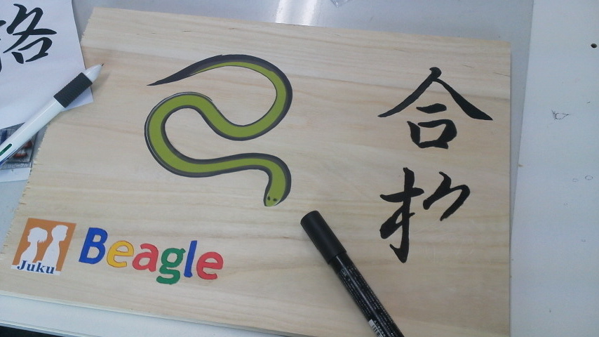 巨大絵馬作成!受験生への合格の想いをこめて 巨大絵馬作成しました! 板を買ってきて、手ごろな大きさに切って、 絵と文字を書き込む! 絵馬っぽく形を整えて… 怪我しないようにヤスリをかけて 完成!! まずまずの出来。 全員が志望校へ合格しますように…。