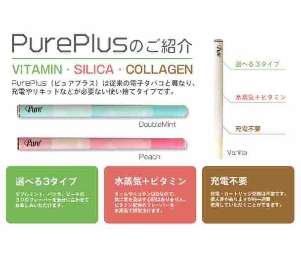 purepls(ピュアプラス)は、天然成分とビタミンだけを含むピュアでクリアな蒸気を吸うことができる電子タバコです😃☝️