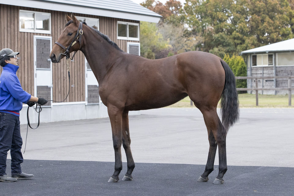 担当者「この中間は順調に初期馴致を終えて、現在はロンギ場での騎乗運動を行っています。移動してきて数週間は少し敏感でテンションが上がりやすいところがあり、馴致に時間をかけて進めていきましたが、徐々に環境の変化にも慣れてくれましたし、丁寧に対処していった分、精神面はとても安定してきているように感じます。馬体面については、小柄ながらも本馬なりに体に張りが出てきていますが、まだまだ物足りないので継続して筋力を付けていきたいと思います。ロンギ場での動きについては、軽い走りをして跳びが綺麗なタイプですよ。走ることに対して真面目ですし、人が跨っても前向きな気持ちに変わりはなく進めていけているので、コースでの運動にもスムーズに移行することが出来そうです。やや気が入り過ぎるところがありますから、今後はメンタル面に注意して進めていくと共に、飼い葉食いが少し弱いので、工夫しながら成長を促していきたいと思います」馬体重424kg