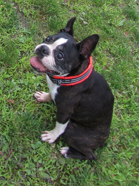 本日8/18(土)12時~13時ごろ、帰省先の実家の庭から、ボストンテリアのジンベイ(10才、オス)が逃げ出してしまいました。