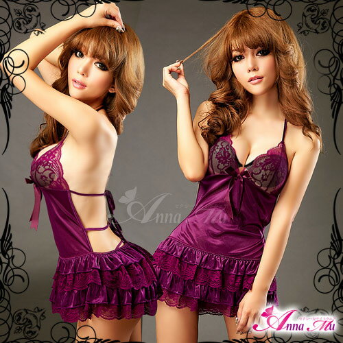 ベビードール Tバックセット【送料無料 セクシーランジェリー】後ろ姿で悩殺!エプロン風セクシーベビードール (大きいサイズ対応)【パープル/セクシー ランジェリー/セクシー下着/エロい下着/エッチな下着/いやらしい下着/SEXYランジェリー/ネグリジェ】【あす楽対応】