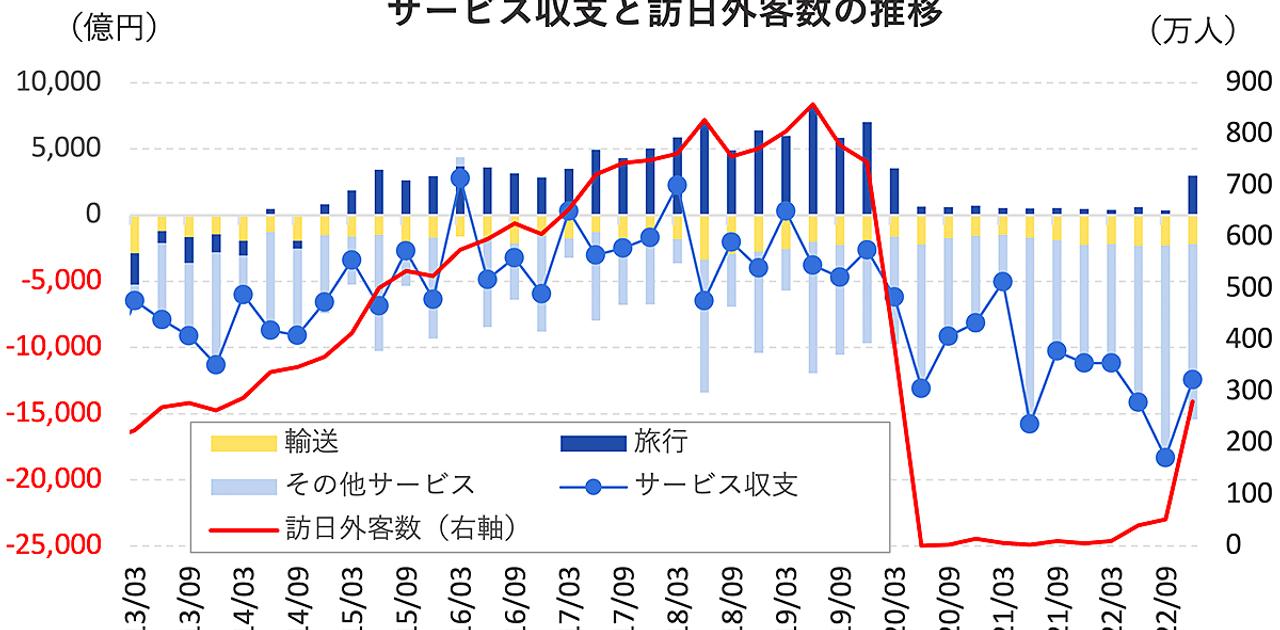 - 旅行はコロナ前までインバウンドが下がったが黒字は上がってきている