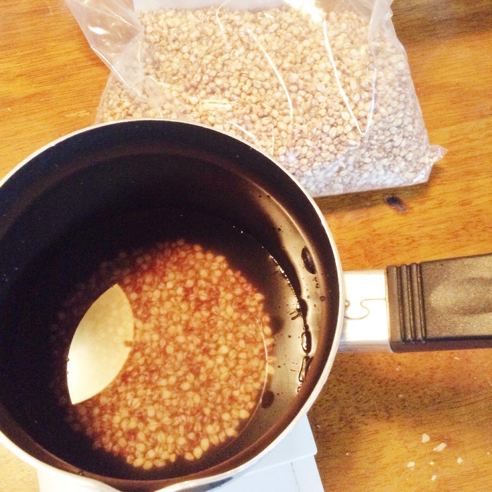 まずはもち麦茹でます。