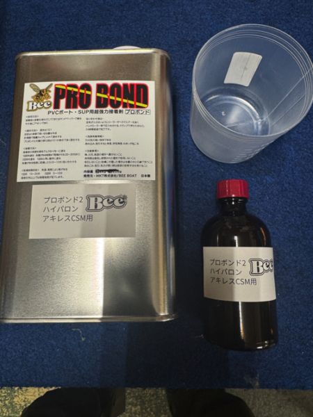 ゴムボを諦めないユーザーに!遂にアキレスCSM専用のプロボンドも一般に販売します! 修理のプロが使う、 2液性のCSM専用ボンドは、接着力が違いすぎます! 遂にユーザーへも販売!アキレスCSM&ハイパロン専用・最強の接着剤「プロボンド2&硬化剤セット」-BEE BOAT 販売(BEE BOAT)beeboat2003.com8,800円商品を見る アキレスが売らないから、 BEEが独自に販売を開始しました。 アキレスさん、ごめんなさい・・・ もちろん、CSM生地も大型サイズから、 得意のパッチセットまで販売します。 現在、裁断、PKG詰め込み中です。10月中旬から発売! 遂にユーザーへも販売!アキレスCSM&ハイパロン専用・最強の接着剤「プロボンド2&硬化剤セット」-BEE BOAT 販売(BEE BOAT)beeboat2003.com8,800円商品を見る