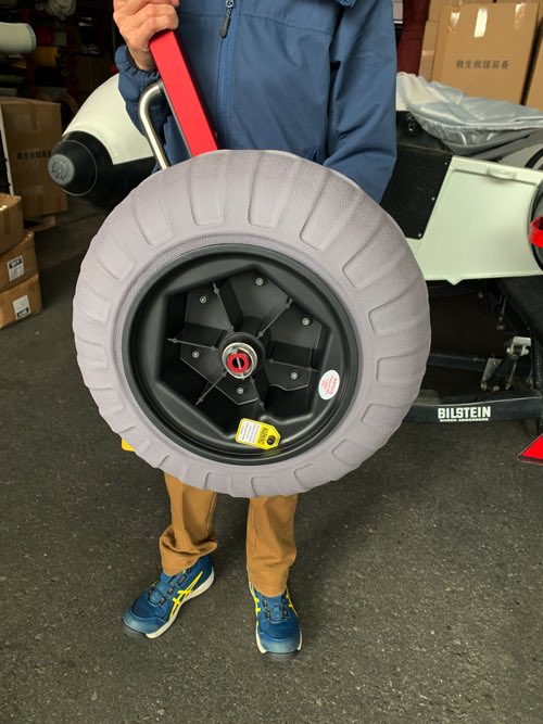 タイヤに合わせたシャフトに入替、タイヤを挿入します。