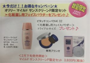 オリリーマイルドサンスクリーンPをお買上げの方に、