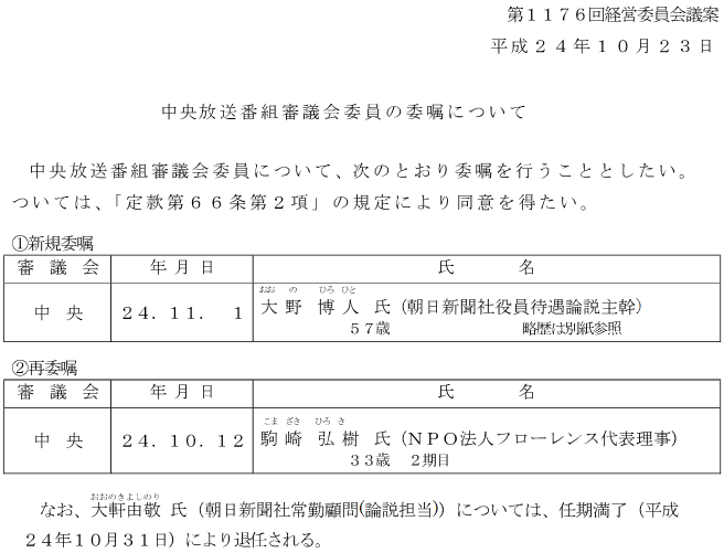 早野透(朝日)氏ら運営委員に40名