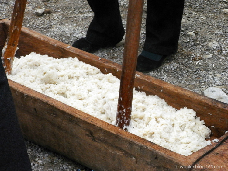 日本や中国では杵と臼は餅付きにも使うようになる。