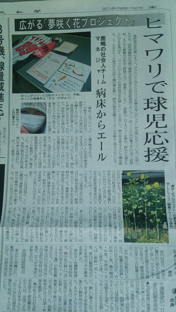 訂正紙面などによると、同社は7月27日付社会面で、闘病生活を送る元マネジャーが、高校球児を応援しようとヒマワリを植える活動を行っていると報道した。