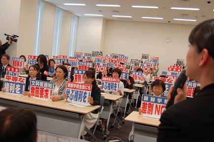 ▽補足写真 朝鮮学校補助金停止、不当な差別と抗議する朝鮮学校生徒の親