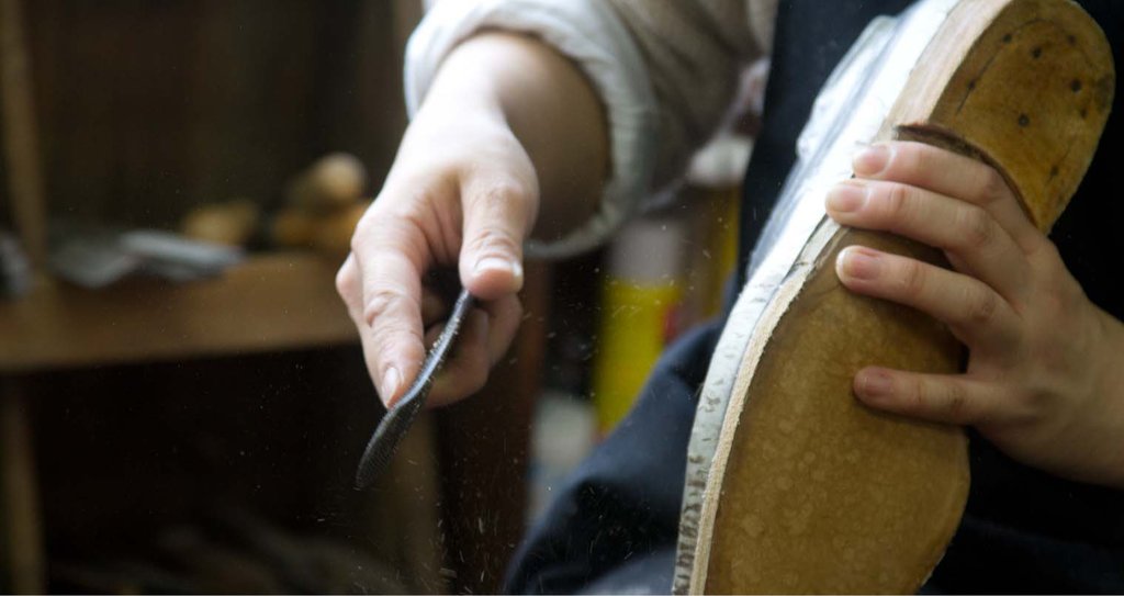 縫い終わったウェルトはソールをつける際にウェルトが波立たないように