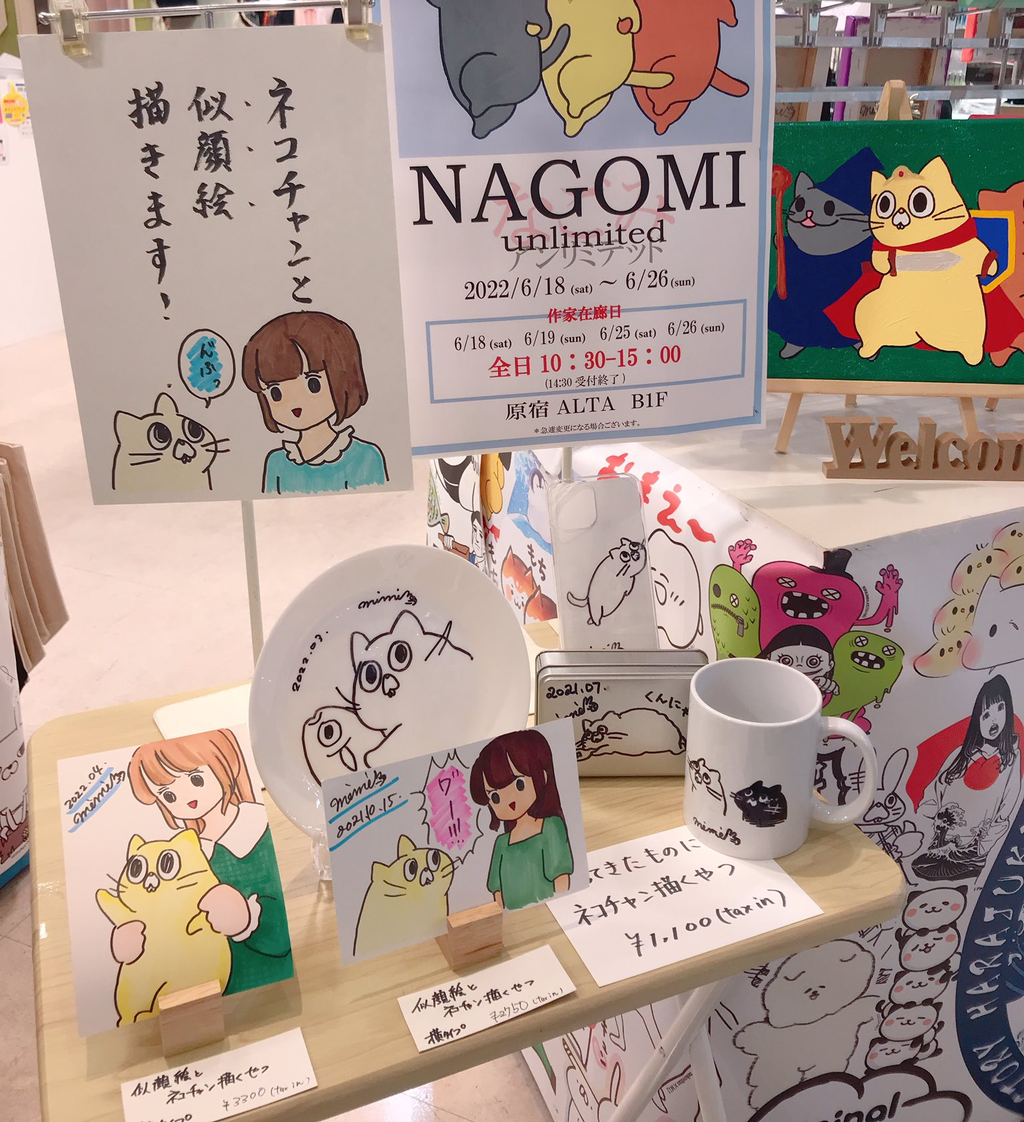 いつもの似顔絵とネコチャン描くやつです。