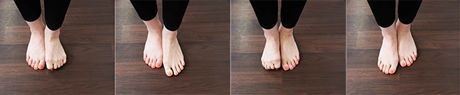 手を後ろで組んで背筋を伸ばし、つま先立ちをします。