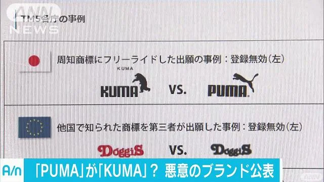 「PUMA」が「KUMA」に? 特許庁がNG商標を公表 特許庁は「PUMA(プーマ)」ならぬ「KUMA(クーマ)」など、悪意ある商標出願50を公表しました。 特許庁は、アメリカや中国、韓国など各国で「悪意がある」として登録を取り消された商標出願の事例集を公表しました。国内の事例では、スポーツブランド「PUMA」の「P」を「K」に変えてクマのシルエットと組み合わせた「KUMA」が載っています。他にも韓国の事例で、高級時計のブランド「ROLEX(ロレックス)」と1文字違いの「POLEX(ポレックス)」など、有名ブランドによく似たロゴマークの無断登録など50の事例が紹介されています。駄目なんだ。ジョークでいいような気がするけど...