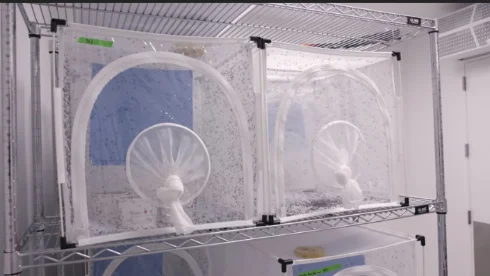 こうした害虫駆除方法は「不妊虫放飼」と呼ばれる。大量の不妊蚊が野生のメスの蚊と交尾すれば、その卵は孵化しないので、成虫が減っていく。なお、不妊蚊はバクテリアを保有するだけで、遺伝子操作はされていない。